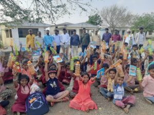 यावेळी जिल्हा महिला व बाल रुग्णालय जालना येथे रुग्णांना फळ वाटप करण्यात आले तर काजळा येथे जिल्हा परिषद शाळेमध्ये शालेय साहित्य व वॉटरबॅग वाटप करण्यात आले. यावेळी आयोजक संतोष रमेशराव शिंदे, काजळा गावाचे सरपंच प्रकाश गावडे, अॅड. राम कुर्हाडे, लक्ष्मण कुर्हाडे, रमेश गोलडे, शिंदे मामा, संतोष रमेशराव शिंदे, सुधाकर मोरे, शिवहार कलाने, शिवाजी राठोड, किशोर पाखरे यांची उपस्थिती होती.