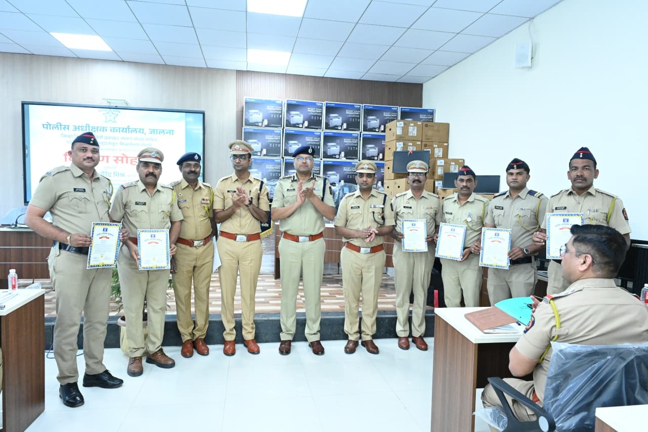 बैठकीच्या प्रारंभी जिल्हा नियोजन समितीकडून प्राप्त झालेल्या एक कोटी सत्तावन लाख रुपये अनुदानातून जालना जिल्ह्यातील पोलीस यंत्रणेसाठी आधुनिक साधनसामग्रीचे वितरण करण्यात आले. यामध्ये 30 झेरॉक्स मशीन, 60 संगणक संच, 60 प्रिंटर आणि 10 लॅपटॉपचा समावेश असून ही उपकरणे जिल्ह्यातील पोलीस ठाणे, उपविभागीय पोलीस अधिकारी कार्यालये तसेच विविध शाखांना देण्यात आली.